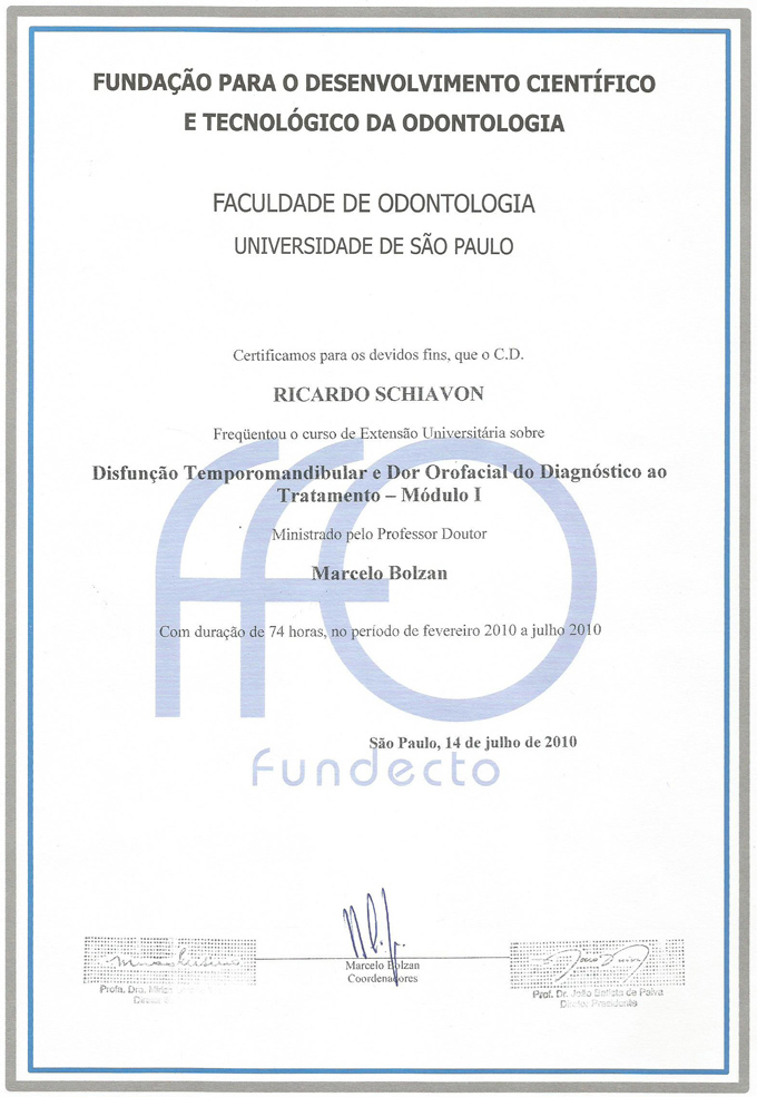 Trabalhou no setor de urgência da USP, sendo apto a atender os mais variados casos. Possui curso de extensão nas áreas de Ortodontia e Disfunção da Articulação Temporo Mandibular (ATM).